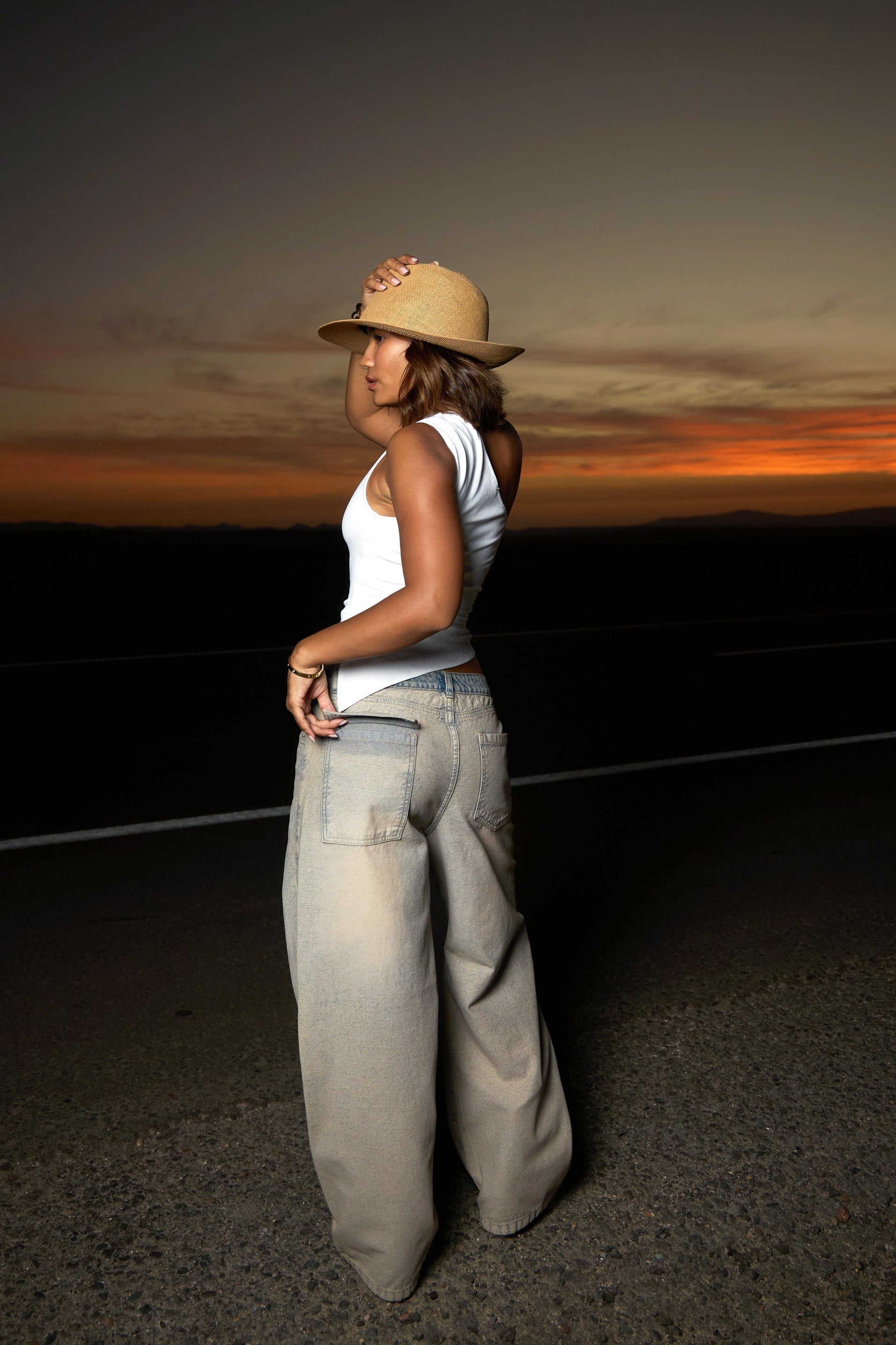Jeans de corte baggy elaborado en algodón denim rígido, con un fit semi ajustado en la cintura y la cadera, y piernas holgadas. Con dos bolsillos posteriores: uno de diseño cuadrado y otro con tapa. Incluyen cierre y botón para un ajuste definido.